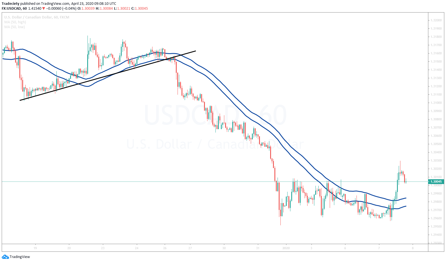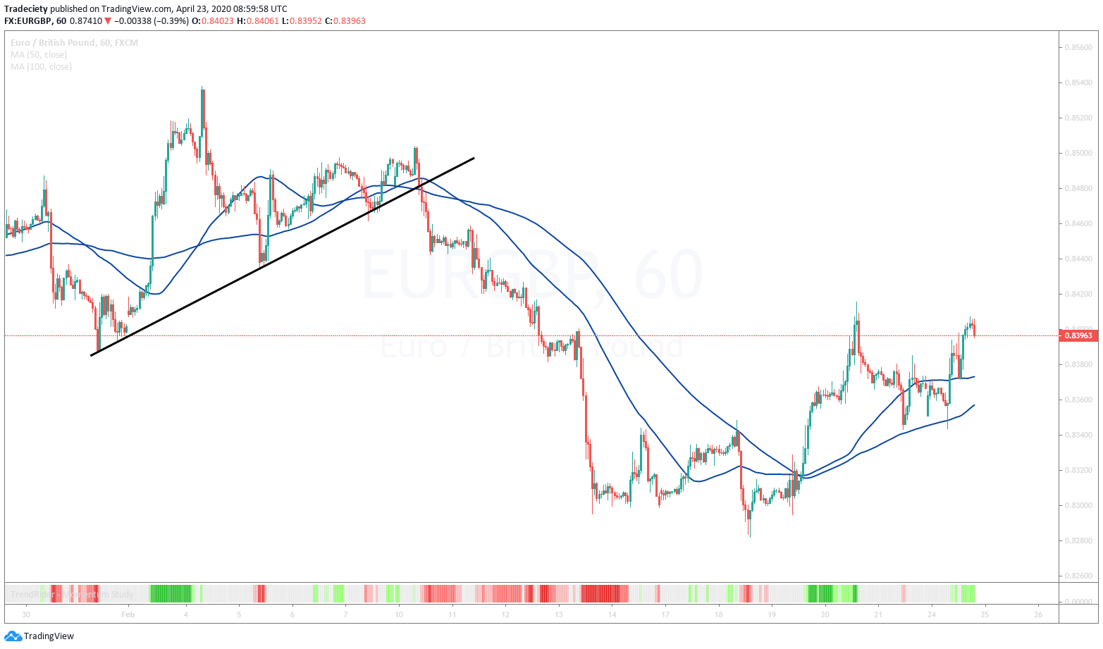 The 50 period tunnel is so popular in the past videos, I talked also about a 20 period tunnel. So you can basically use the tunnel on any time frame or with any setting as well. And what you do is you open a moving average on trading view or your platform and instead of going for the, the common and the default setting, which is usually high, low, close, divided by three, you just choose the setting of high and low. So you have two moving averages. Both are the 50 period, one is applied to the high, one is applied to the low and this will give you this nice channel and how you’re going to use it, is as a confirmation to stay in trends and trend following traits better. And you can see here we have a trend line. Again, during a range market, the moving averages won’t work, but if you can define such a nice pattern, you just simply wait for the breakout and if you get in, you can use this tunnel as a confirmation and to boost your confidence because one of the biggest problems that I keep seeing in traders is that they can’t hold onto their winning traits.